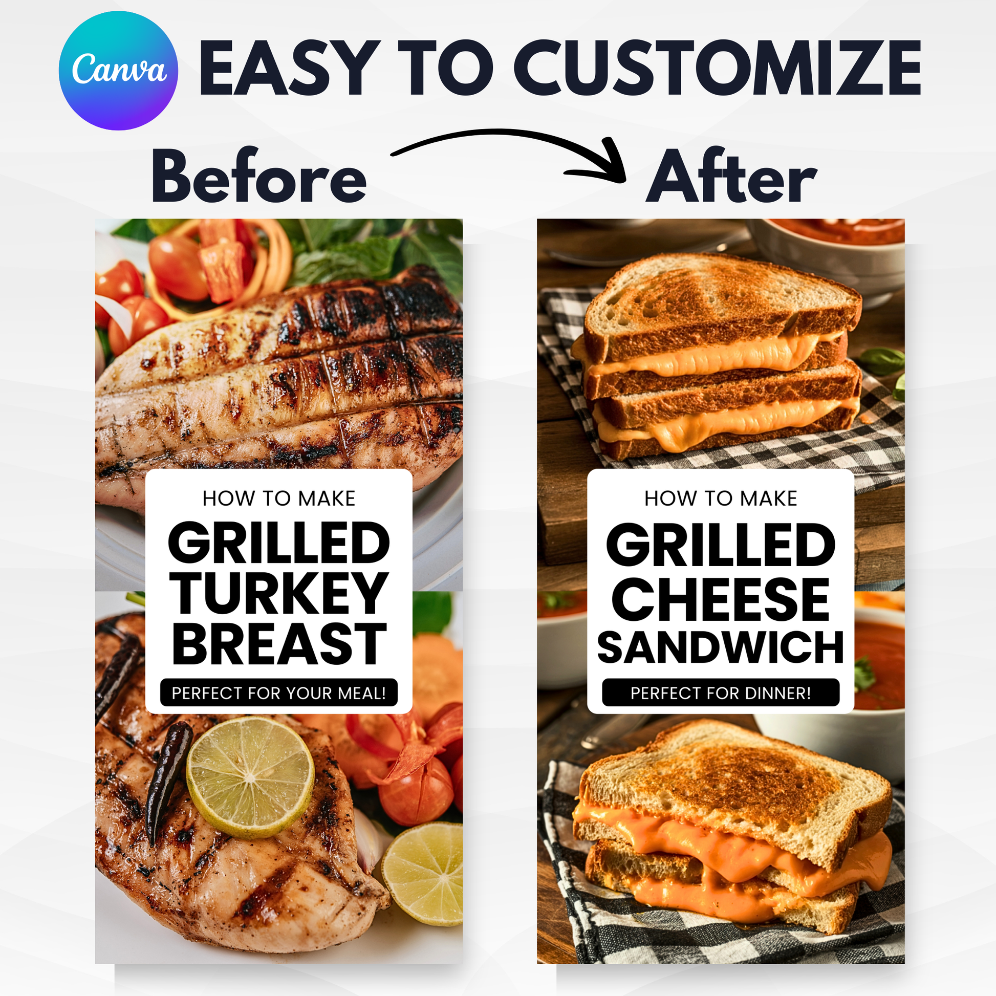 If you want your brand to look expensive, modern, and intentional, these Food Blogger Pinterest Pin Templates are the answer. They guide the viewer’s eye directly to your key message and photography without any visual noise.