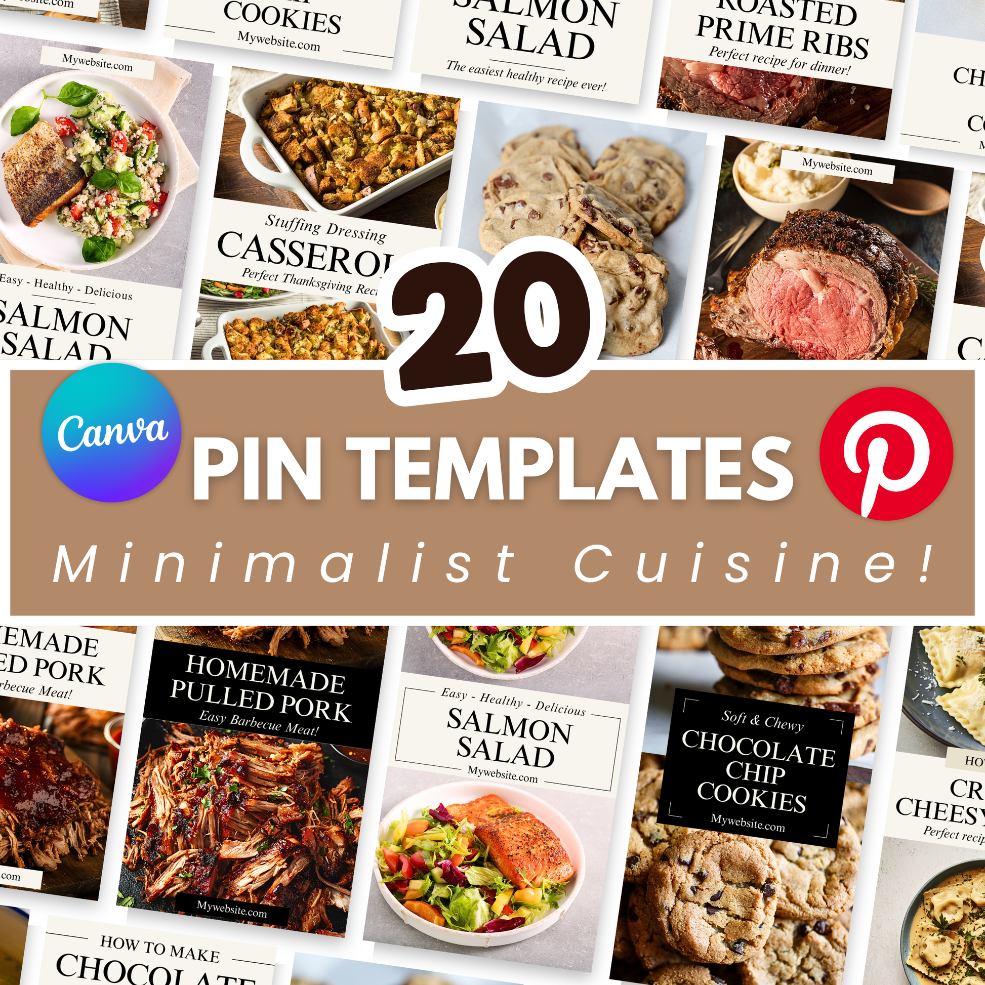 If you believe that great food doesn't need clutter to sell itself, these Food Blogger Pinterest Pin Templates are your perfect companion. They provide just enough structure to display your text clearly while leaving maximum negative space for your beautiful imagery.